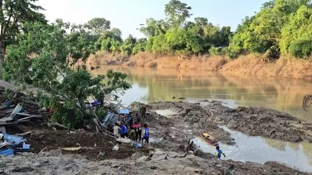 สุโขทัย 8 ต.ค. – สุโขทัยระทึก ตลิ่งริมแม่น้ำยมทรุด ทำบ้านพังทลายลงแม่น้ำทั้งหลัง หล่นลงน้ำ 9 คน ช่วยขึ้นมาได้ 6 คน เสียชีวิต 1 คน และเด็กหญิงวัย 10 ขวบ สูญหาย 1 คน