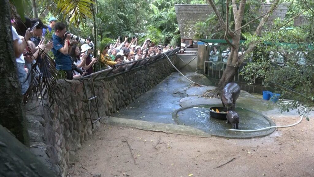 ผู้สื่อข่าวสอบถามน้องคนหนึ่ง อายุ 11 ปี บอกว่า เดินทางมากับครอบครัว มาจากเชียงใหม่ เพื่อมาดูหมูเด้งโดยเฉพาะ ตื่นนอนตั้งแต่ตี 2 ดีใจมากที่ได้เจอน้องแล้ว อีกคนหนึ่งเดินทางมาจากสมุทรสาคร ตั้งแต่ 03.00 น. มาถึงสวนสัตว์ฯ ประมาณ 07.00 น. เพื่อมาดูหมูเด้ง ซึ่งคนเยอะมาก แต่ด้วยความตั้งใจ ไม่ย่อท้อที่จะเข้าคิวเพื่อรอดูหมูเด้ง