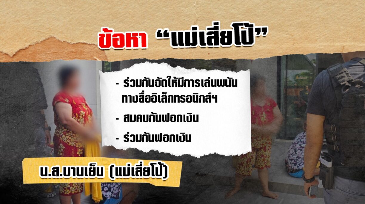 ตำรวจกองบัญชาการตำรวจสอบสวนกลาง โดยกองบังคับการปราบปราม นำกำลังเข้าจับกุม น.ส.บานเย็น (แม่เสี่ยโป้) อายุ 51 ปี ขณะกำลังหลบอยู่หลังโซฟา เป็นผู้ต้องหาตามหมายจับ ศาลอาญาปี 64 ข้อหากระทำความผิดฐาน “ร่วมกันจัดให้มีการเล่น หรือทำอุบายล่อ ช่วยประกาศโฆษณาหรือชักชวนโดยทางตรงหรือทางอ้อมให้ผู้อื่นเข้าเล่นหรือเข้าพนันในการเล่นทางสื่ออิเล็กทรอนิกส์โดยมิได้รับอนุญาตจากเจ้าพนักงาน สมคบโดยการตกลงกันตั้งแต่สองคนขึ้นไป เพื่อกระทำผิดความผิดฐานฟอกเงินและได้มีการกระทำความผิดฐานฟอกเงินเพราะเหตุที่ได้มีการสมคบกัน และร่วมกันฟอกเงิน”