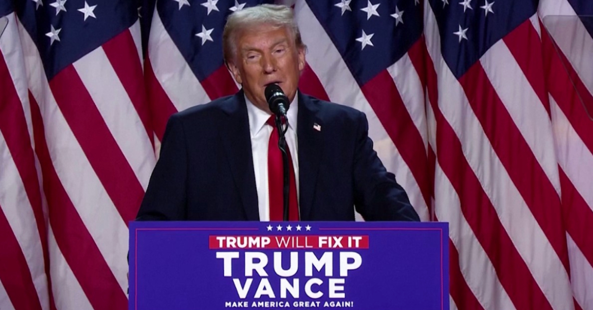 ทั้งนี้ ทรัมป์ ขึ้นเวทีกล่าวกับบรรดาผู้สนับสนุนที่มารวมตัวกันที่ศูนย์ประชุมปาล์มบีช เคาน์ตี้ คอนเวนชั่น เซ็นเตอร์ ในรัฐฟลอริดา ว่า อเมริกาได้ให้อาณัติทางการเมืองที่ทรงพลังและไม่เคยมีมาก่อนแก่เขา ขอขอบคุณประชาชนที่ทำให้เขาได้กลับมาดำรงตำแหน่งประธานาธิบดีอีกเป็นสมัยที่ 2 หลังจากนี้ เขาจะฟื้นคืนอเมริกาให้กลับมาแข็งแกร่งและยิ่งใหญ่ และทำให้อเมริกากลับมายืนหนึ่งบนเวทีโลก และหวนกลับสู่ยุคทองของมหาอำนาจอีกครั้ง