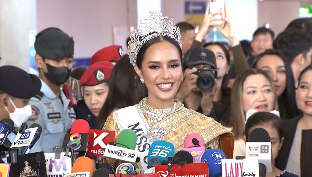 สุวรรณภูมิ 21 พ.ย. – กลับถึงไทยแล้ว “โอปอล สุชาตา” รองอันดับ 3 มิสยูนิเวิร์ส 2024 ปรากฏตัวในชุดไทย สวยสง่า แฟนนางงามต้อนรับอย่างอบอุ่น