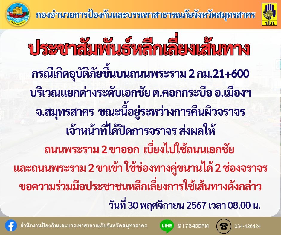 สมุทรสาคร 30 พ.ย.- กู้ครบแล้ว! 6 ร่างผู้เสียชีวิตเหตุคานก่อสร้าง ถนนพระราม 2 พังถล่ม แนะหลีกเลี่ยงเส้นทางถนนพระราม 2 ขาออก ทุกช่องทาง
