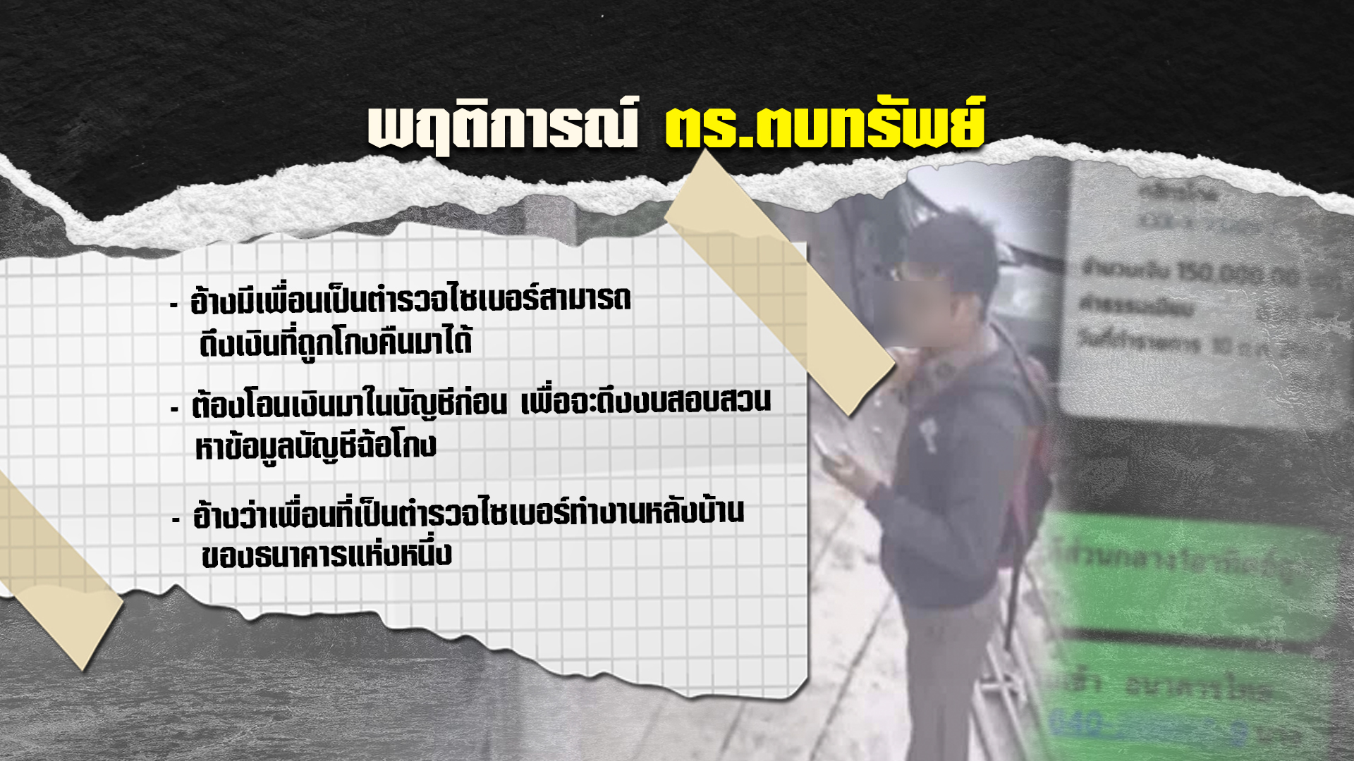สำหรับคดีนี้ ผู้เสียหายประกอบธุรกิจย่านบางแสน จ.ชลบุรี นำคลิปมาโพสต์ในเฟซบุ๊ก ที่ไปซื้อสินค้าออนไลน์ 900 บาท แล้วไม่ได้ของ ก่อนไปร้องในเพจตำรวจไซเบอร์ แต่พบว่าเป็นเพจปลอม ถูกหลอกให้โอนเงินอีก 2.5 ล้านบาท เหตุเกิดช่วงเดือนตุลาคม 2567 จึงเข้าแจ้งความกับตำรวจ สภ.แสนสุข จ.ชลบุรี แต่คดีไม่คืบ จึงมาตามความคืบหน้าที่โรงพัก ส.ต.อ.นายหนึ่ง ของ สภ.แสนสุข ได้มาพูดคุยลักษณะว่า มีเพื่อนเป็นตำรวจไซเบอร์ และสามารถตามเงินกลับมาได้ โดยบอกให้ผู้เสียหายโอนเงินให้ตำรวจ เป็นเงิน 150,000 บาท เป็นเงินทดลองบัญชี และเงินทดลองดำเนินการสอบสวน อีกทั้งระบุว่า ภายใน 7 วัน จะคืนเงินให้ และเงิน 2.5 ล้านที่ถูกโกง ก็จะทยอยคืนให้ แต่เมื่อครบกำหนด กลับไม่ได้เงินคืน จึงเข้าแจ้งความดำเนินคดีกับตำรวจนายนี้ ซึ่งจากข้อมูลความผิดชัดเจน ต้องดำเนินคดีทางอาญาและทางวินัยอย่างเด็ดขาด พร้อมสืบสวนสอบสวนว่ามีผู้อื่นเกี่ยวข้องด้วยหรือไม่ และดำเนินคดีโดยไม่ละเว้น ในส่วนคดีที่ผู้เสียหายถูกฉ้อโกง กำชับพนักงานสอบสวนเร่งรัดสอบสวน ส่งประเด็นไปยังกองบัญชาการตำรวจสืบสวนสอบสวนอาชญากรรมทางเทคโนโลยี. – สำนักข่าวไทย