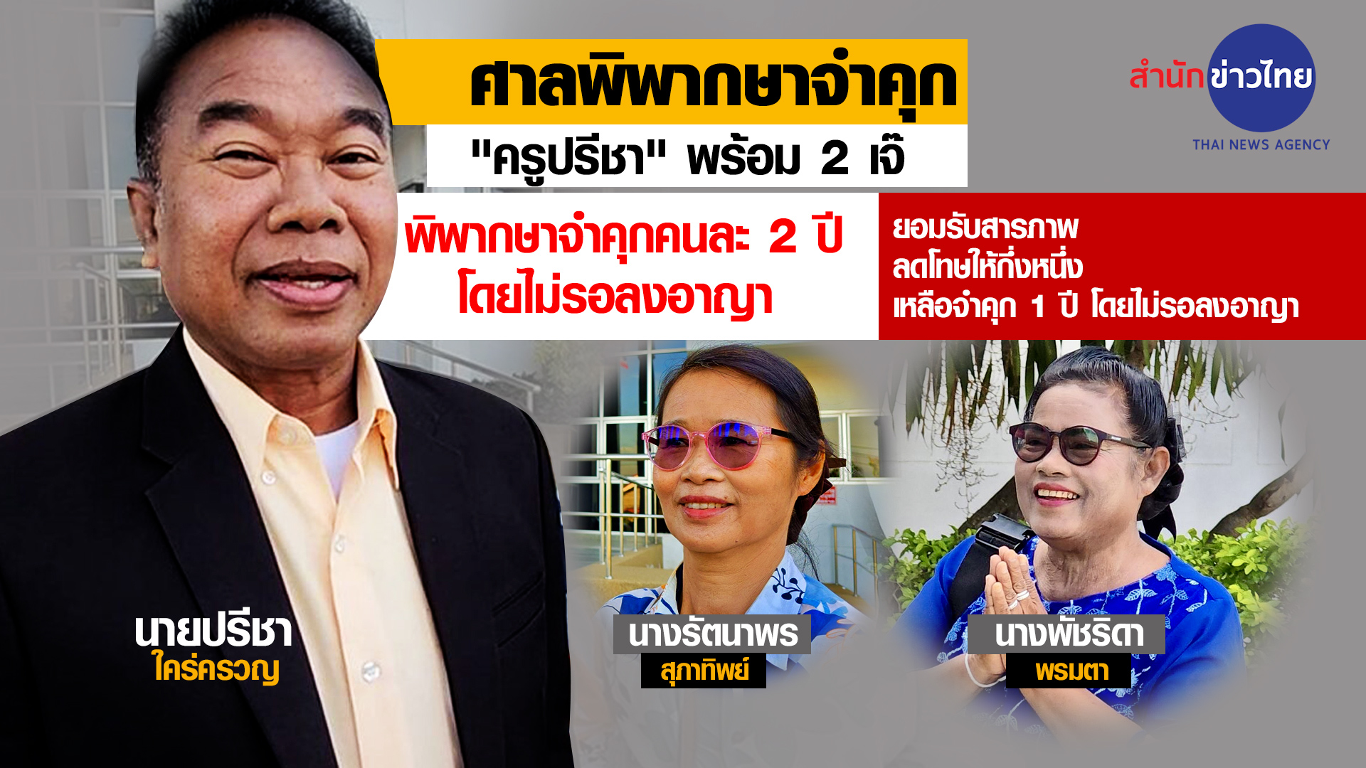 กาญจนบุรี 12 ธ.ค.- ศาลพิพากษาลงโทษจำคุก “ครูปรีชา-เจ๊บ้าบิ่น-เจ๊พัช” คนละ 2 ปี โดยไม่รอลงอาญา คดีเบิกความเท็จหวย 30 ล้าน