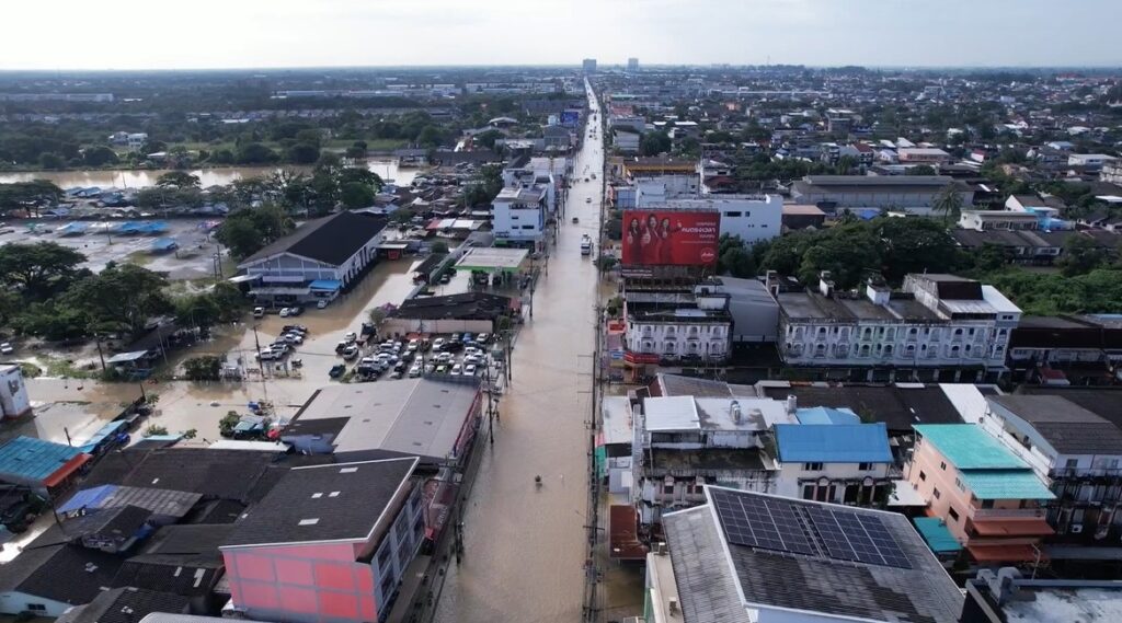 ภาพมุมสูงจะเห็นว่าเช้านี้พื้นที่ตัวเมืองนครศรีธรรมราช ยังมีน้ำท่วมอยู่ แต่ถ้าเปรียบเทียบกับวานนี้ (16 ธ.ค.) ระดับน้ำลดลงมาก บางจุดน้ำแห้งสนิดหมดแล้ว แต่บางจุดน้ำยังท่วมเต็มพื้นที่ เช่น ถนนพัฒนาการคูขวาง ย่านเศรษฐกิจของเมืองนครศรีธรรมราช เช้านี้น้ำยังท่วมเต็มพื้นที่ตลอดถนนความยาวกว่า 6 กิโลเมตร แต่ระดับน้ำลดลงจากวานนี้มากกว่า 50 เซนติเมตร