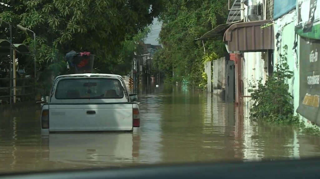 ส่วนพื้นที่รอบนอกตัวเมือง เส้นพื้นที่ ต.โพธิ์เสด็จ ตลาดหัวอิฐ ตลาดกลางเกษตร ที่มีน้ำท่วมสูง รวมถึงเส้นทางมุ่งหน้าสนามบินนครฯ ภาพรวมคลี่คลายลงแล้วเกือบหมด แต่ยังมีน้ำขังอยู่บนถนนเป็นช่วงๆ รถกลับมาสัญจรไปมาได้