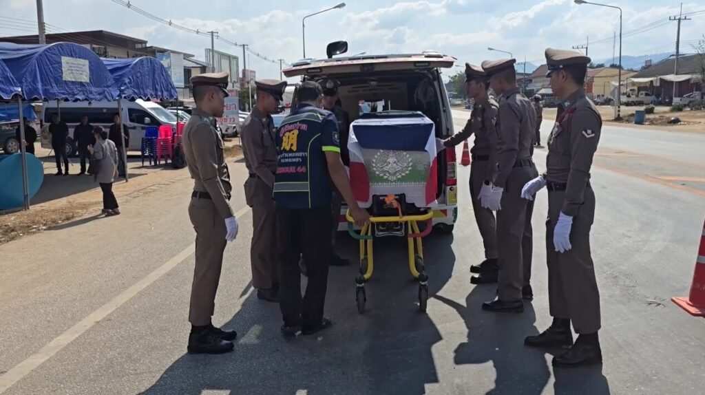 กำแพงเพชร 18 ธ.ค. – สุดสะเทือนใจ นำร่าง “หมู่อาร์ม” ผบ.หมู่ สภ.เมืองกำแพงเพชร ถูกรถกระบะขนแรงงานต่างด้าวแหกด่านพุ่งชนเสียชีวิต กลับมาบำเพ็ญกุศล ขณะที่สำนักงานตำรวจแห่งชาติ ปูนบำเหน็จ 5 ชั้นยศ