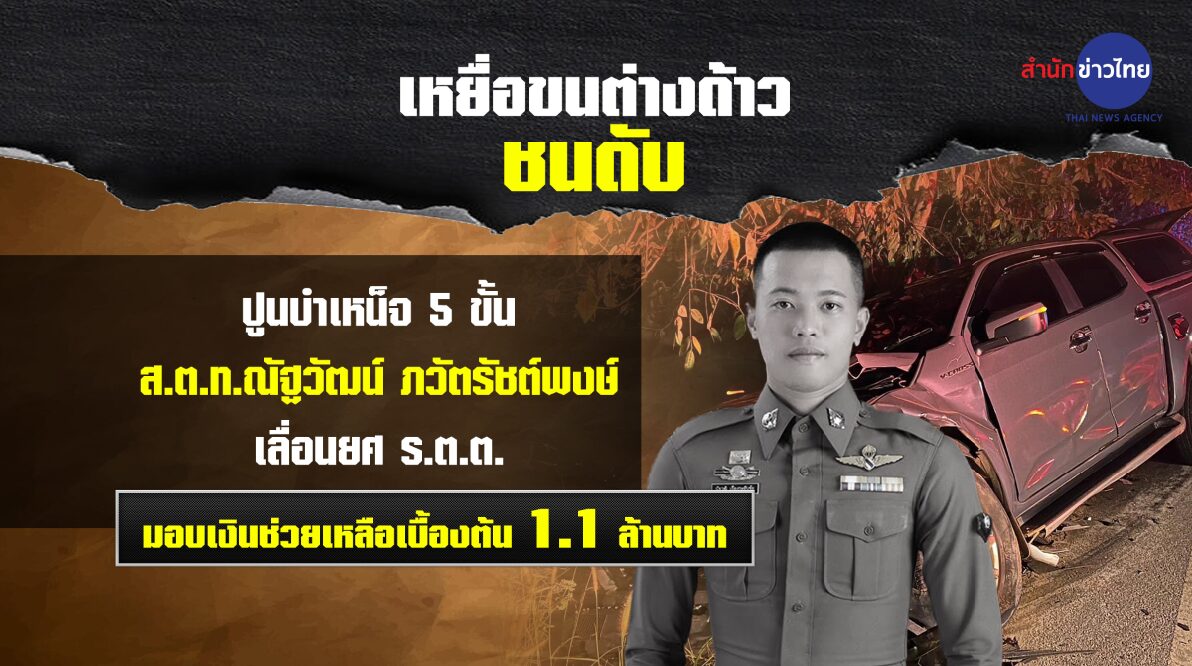 โดยล่าสุด สำนักงานตำรวจแห่งชาติ ปูนบำเหน็จ ส.ต.ท.ณัฐวัฒน์ ขั้นยศ จากสิบตำรวจโท เป็น ร.ต.ต. มอบเงินช่วยเหลือเบื้องต้น 1.1 ล้านบาท .-สำนักข่าวไทย