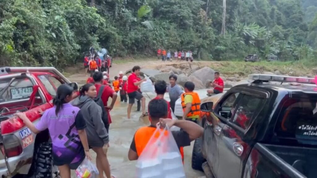 ส่วนพื้นที่ ต.กรุงชิง อ.นบพิตำ มีผู้ประสบภัยกว่า 50 ครัวเรือน 300 กว่าชีวิต ขาดการติดต่อมาแล้ว 7 วัน ไม่มีไฟฟ้า ไม่มีสัญญาณโทรศัพท์และยังไม่มีหน่วยงานไหนเข้าถึง วอนหน่วยงานที่เกี่ยวข้อง เร่งเข้าไปให้การช่วยเหลือด่วนด้วย.-สำนักข่าวไทย