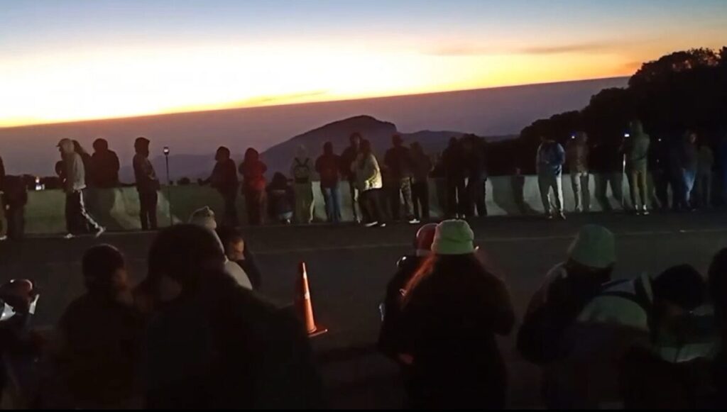 ขณะเดียวกันนักท่องเที่ยวส่วนใหญ่จะยืนรอพระอาทิตย์สาดแสง เพื่อถ่ายภาพความสวยงาม นักท่องเที่ยวเยอะมาก จนลานจอดรถ บริเวณจุดชมวิวกิ่วแม่ปานเต็มจนล้นออกมาจอดตามริมถนน ร้านค้าสวสดิการฯ อาหารและเครื่องดื่มร้อนๆ ขายดีมาก นักท่องเที่ยวต้องต่อคิวซื้อ