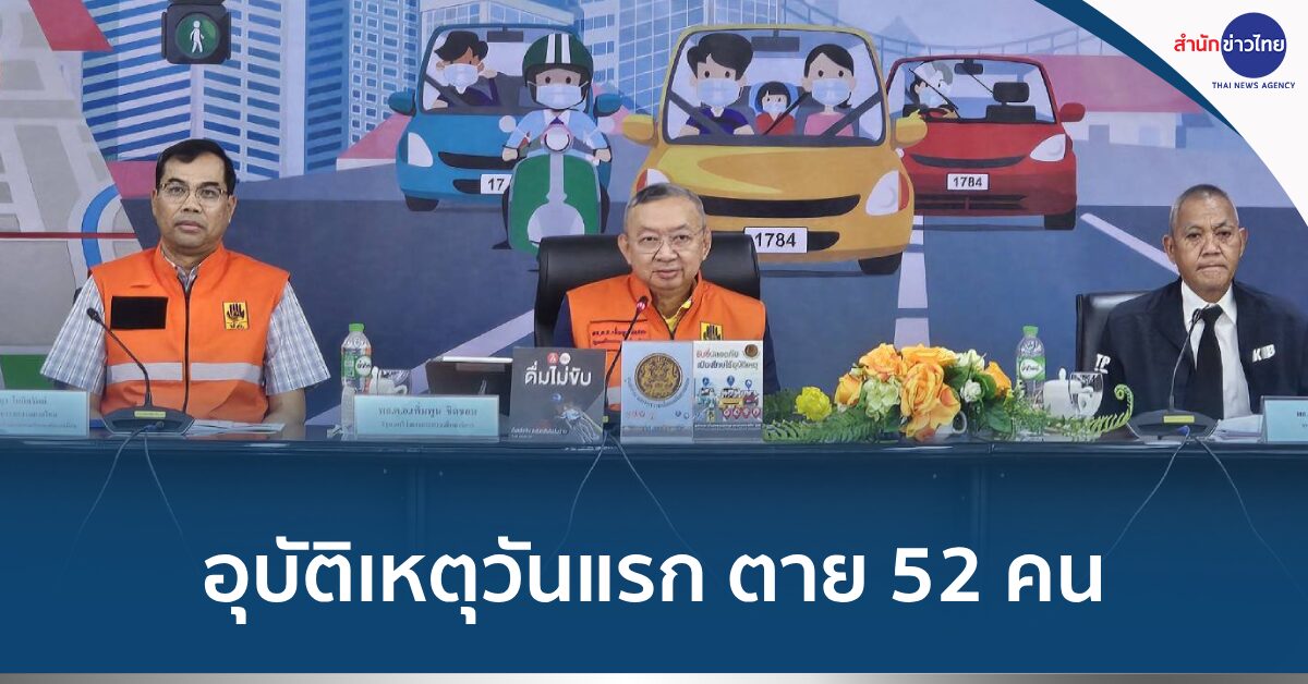กทม. 28 ธ.ค. – สถิติวันแรก 10 วันอันตราย ตาย 52 อุบัติเหตุ 322 ครั้ง บาดเจ็บ 318 คน “เพิ่มพูน” เน้นทุกฝ่ายช่วยกันดูแลความปลอดภัย อำนวยความสะดวก เข้มเรื่องกฎหมาย
