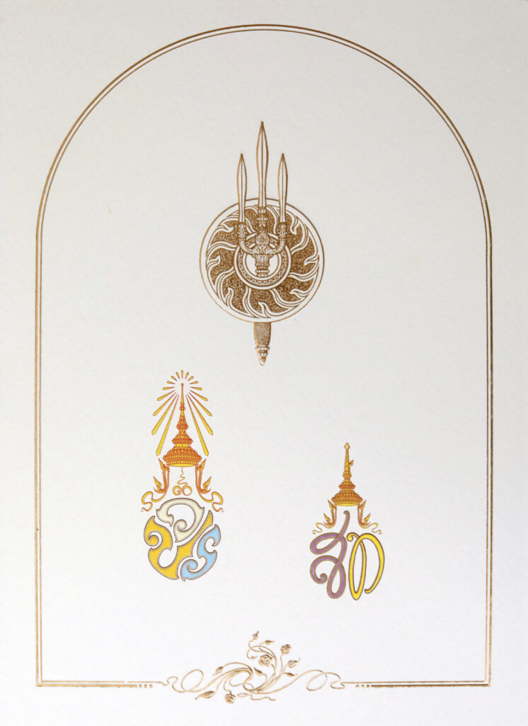 ส่วนด้านขวาของบัตรพระราชทานพร เป็นพระบรมฉายาลักษณ์พระบาทสมเด็จพระเจ้าอยู่หัว ที่ทรงฉายคู่กับสมเด็จพระนางเจ้าฯ พระบรมราชินี ในกรอบลวดลายสีทอง ด้านบนของกรอบบัตรพระราชทานพร มีตราประจำพระราชวงศ์จักรี ส่วนด้านซ้ายของกรอบบัตรพระราชทานพร เป็นพระปรมาภิไธย วปร. ด้านขวาของกรอบบัตรพระราชทานพร เป็นพระนามาภิไธย สท.
