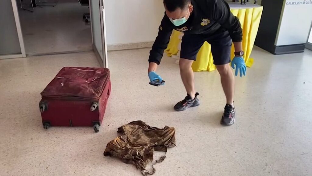 รองผู้กำกับ สภ.ห้วยใหญ่ เปิดเผยว่า ตรวจสอบเบื้องต้นกระเป๋าที่พบ ขนาด 32 นิ้ว ภายในมีเสื้อคอกลมสีน้ำตาล มีสัญลักษณ์นักเบสบอล กางเกงในผู้ชายสีเขียว และผ้าคลุมไหล่มีหมวก ไม่มีร่องรอยคราบเลือดหรือน้ำเหลืองในกระเป๋าเดินทาง ส่วนโครงกระดูกถูกส่งไปยังสถาบันนิติเวช โรงพยาบาลตำรวจ เพื่อตรวจดีเอ็นเอและยืนยันตัวตนแล้ว ขณะที่ผู้ใหญ่บ้าน หมู่ 6 ต.ห้วยใหญ่ เผยจุดที่พบ เป็นเนินเขาชื่อ “เขาตั้งตุ่ม” ที่ผ่านมาพบมีศพถูกนำมาทิ้งอำพรางคดีบ่อยครั้ง เนื่องจากถนนเปลี่ยวและไม่มีไฟส่องสว่าง.-สำนักข่าวไทย