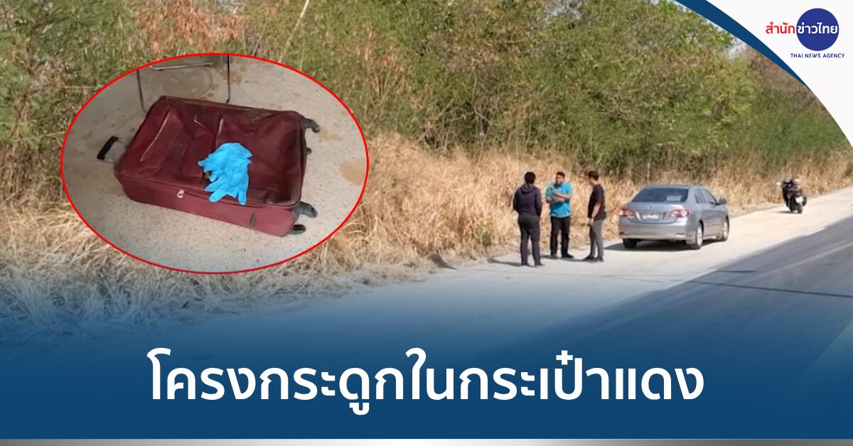 ชลบุรี 12 ม.ค. – เร่งตรวจสอบโครงกระดูกมนุษย์ ในกระเป๋าเดินทางใบใหญ่สีแดง วางทิ้งในร่องน้ำข้างถนนสายห้วยใหญ่ อ.บางละมุง จ.ชลบุรี