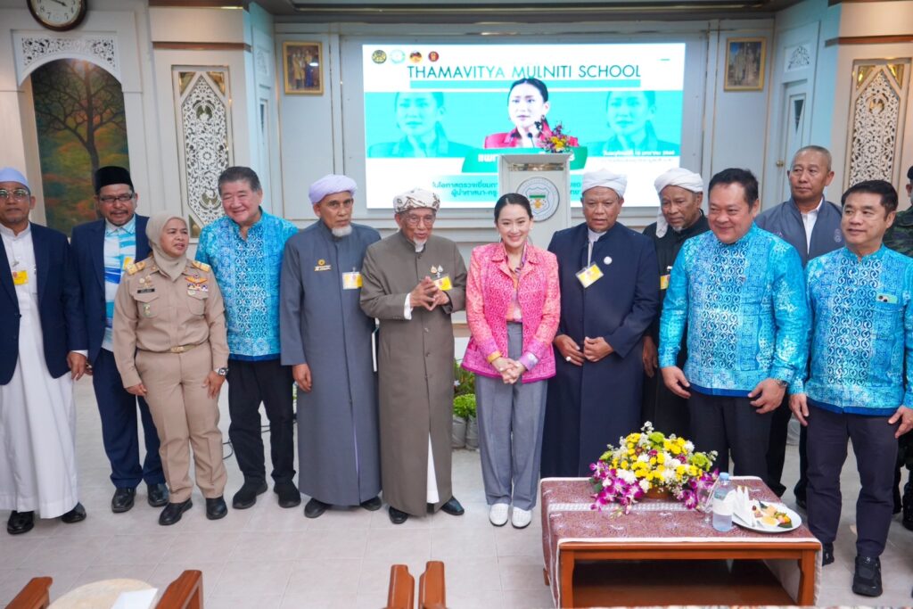 ต่อมานายกฯ พบปะผู้นำศาสนา ผู้นำท้องถิ่น และผู้บริหาร จ.ยะลา โดยผู้อำนวยการโรงเรียนฯ กล่าวว่ารู้สึกภาคภูมิใจที่มีนายกฯ ถึง 2 คนมาเยี่ยมโรงเรียน คนแรกคือนายทักษิณ ชินวัตร อดีตนายกรัฐมนตรี มาเมื่อวันที่ 17 ก.พ. 2548 พร้อมเปิดภาพบนแผ่นสไลด์ ซึ่งเป็นภาพเมื่อครั้งที่นายทักษิณ เป็นนายกฯ เดินมาตรวจเยี่ยมโรงเรียนแห่งนี้ ด้านนายกฯ ที่นั่งรับฟังรายงาน ยิ้มอย่างประทับใจด้วย