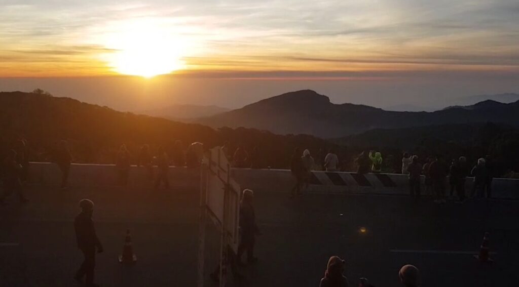 ภาคเหนือยังหนาวต่อเนื่อง บริเวณหลักกิโลเมตรที่ 42 บริเวณกิ่วแม่ปาน บนดอยอินทนนท์ จ.เชียงใหม่ เกิดปรากฏการณ์น้ำค้างแข็ง หรือเหมยขาบ จนขาวโพลน สร้างความตื่นตาตื่นใจให้กับนักท่องเที่ยวที่ไปสัมผัสความหนาวเย็นบนดอยอินทนนท์ ซึ่งได้ชมน้ำค้างแข็งสมใจ ต่างแห่ถ่ายภาพไว้เป็นที่ระลึก หลังอากาศยังหนาวเย็น อุณหภูมิต่ำสุด 7 องศาเซลเซียส แต่อุณหภูมิยอดหญ้า ติดลบ 0.4 องศาเซลเซียส ทำให้เกิดน้ำค้างแข็งติดต่อกันเป็นวันที่ 10 และเป็นน้ำค้างแข็ง หรือเหมยขาบ ครั้งที่ 24 ของหน้าหนาว
