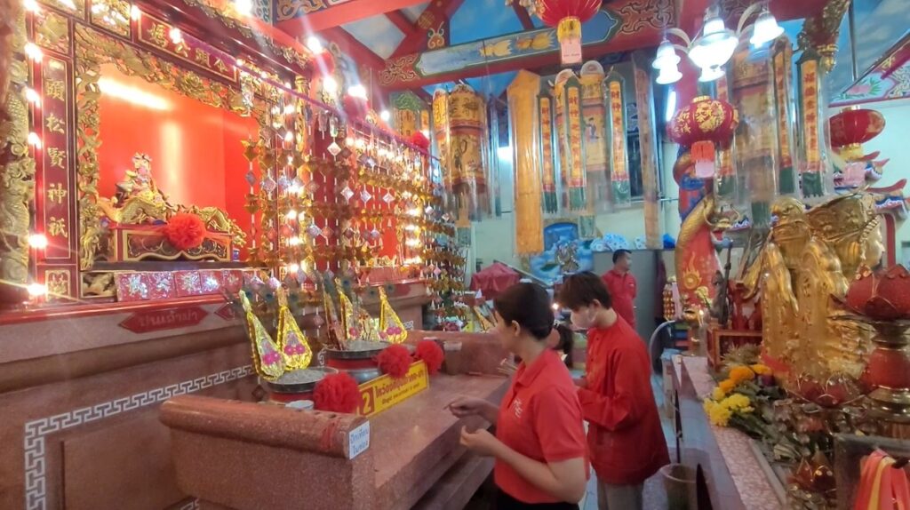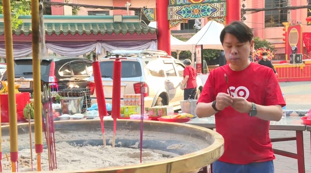 ชาวไทยเชื้อสายจีนสวมชุดแดง พาครอบครัวไหว้เทพเจ้า