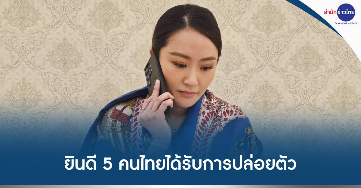 นางสาวแพทองธาร ชินวัตร นายกรัฐมนตรี โพสต์ข้อความผ่านโซเชียลมีเดีย ระบุ “ดิฉันมีความยินดีอย่างยิ่งที่ได้รับแจ้งจากท่านทูตไทยที่อิสราเอลเมื่อครู่ ยืนยันว่า ตัวประกันคนไทย 5 คน ได้รับการปล่อยตัวออกจากกาซาแล้ว ซึ่งเป็นสิ่งที่ทางรัฐบาลได้ดำเนินการผลักดันต่อเนื่อง และเราทุกคนรอคอยมานานค่ะ