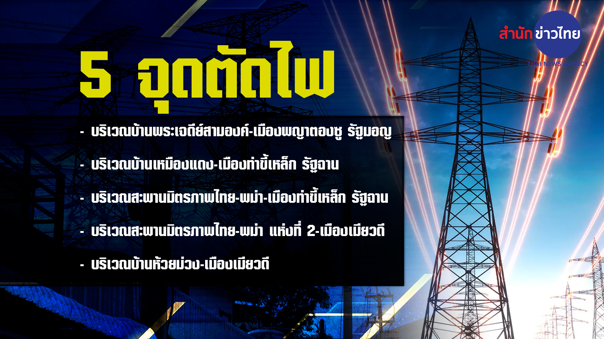 สำหรับ จุดตัดไฟทั้งหมด 5 จุด ได้แก่