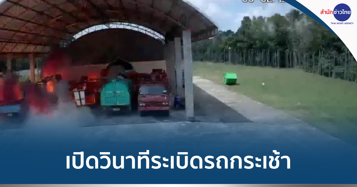 นราธิวาส 7 ก.พ. – เปิดนาทีระเบิดรถกระเช้าจอดอยู่ในที่จอดรถของเทศบาลตำบลรือเสาะ จ.นราธิวาส ช่วงเที่ยงวานนี้ (6 ก.พ.) พังเสียหาย
