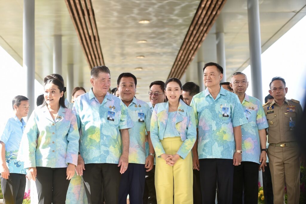 นางสาวแพทองธาร ชินวัตร นายกรัฐมนตรี นำคณะรัฐมนตรี สวมใส่ผ้าบาติก ลายสมิหลาที่ได้รับแรงบันดาลใจจากรูปปั้นนางเงือกทอง ณ ชายหาดสมิหลา รังสรรค์โดยกลุ่มมีดี นาทับอำเภอจะนะ จังหวัดสงขลา ประชุมคณะรัฐมนตรีอย่างเป็นทางการนอกสถานที่ ครั้งที่ 1/2568 ที่ศูนย์ประชุมนานาชาติฉลองสิริราชสมบัติครบ 60 ปี มหาวิทยาลัยสงขลานครินทร์ ตำบลคอหงส์ อำเภอหาดใหญ่ จังหวัดสงขลา และติดตามการตรวจราชการกลุ่มจังหวัดภาคใต้ฝั่งอ่าวไทย(ชุมพร นครศรีธรรมราช พัทลุง สุราษฎร์ธานี และสงขลา)