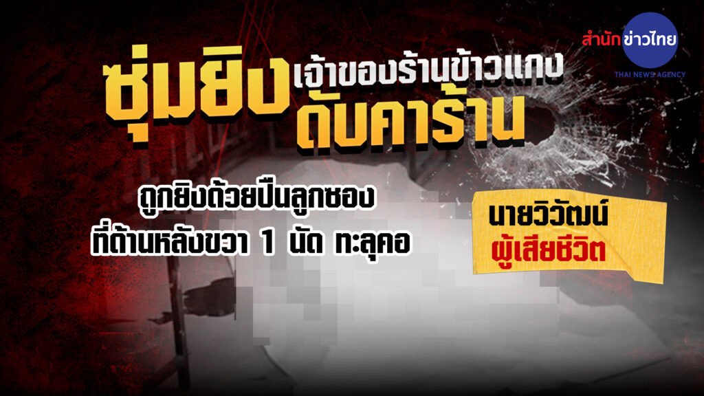 ราชบุรี 21 ก.พ.- คนร้ายโหดซุ่มยิงเจ้าของร้านข้าวแกง กระสุนเจาะทะลุคอเสียชีวิต ขณะยกกับข้าวเตรียมเปิดร้าน ตำรวจเร่งหาเบาะแสคนร้ายและปมเหตุสังหาร