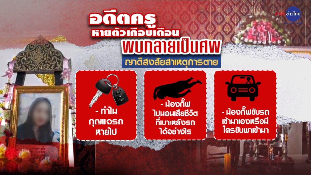 ปทุมธานี 25 ก.พ. – “น้องกิ๊ฟ” อดีตครูหายตัวไปเกือบ 1 เดือน พบอีกทีเป็นร่างไร้วิญญาณในรถยนต์บนลานจอดของโรงพยาบาล ญาติยังติดใจสาเหตุวอนตำรวจตรวจสอบกล้องวงจรปิด ไขข้อสงสัย