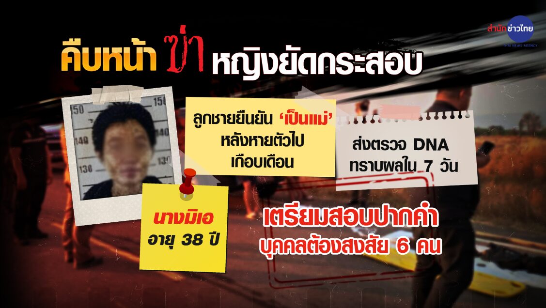 ตาก 1 มี.ค. – ตำรวจเรียกสอบ 6 บุคคลต้องสงสัย เร่งคลี่คลายคดีฆ่ายัดกระสอบหมกป่าหญ้าข้างทาง อ.แม่สอด จ.ตาก ด้านลูกชาย ยืนยันศพที่พบเป็นแม่ ใส่ชุดกีฬาของน้องสาว หายออกจากบ้านนานกว่า 1 เดือน