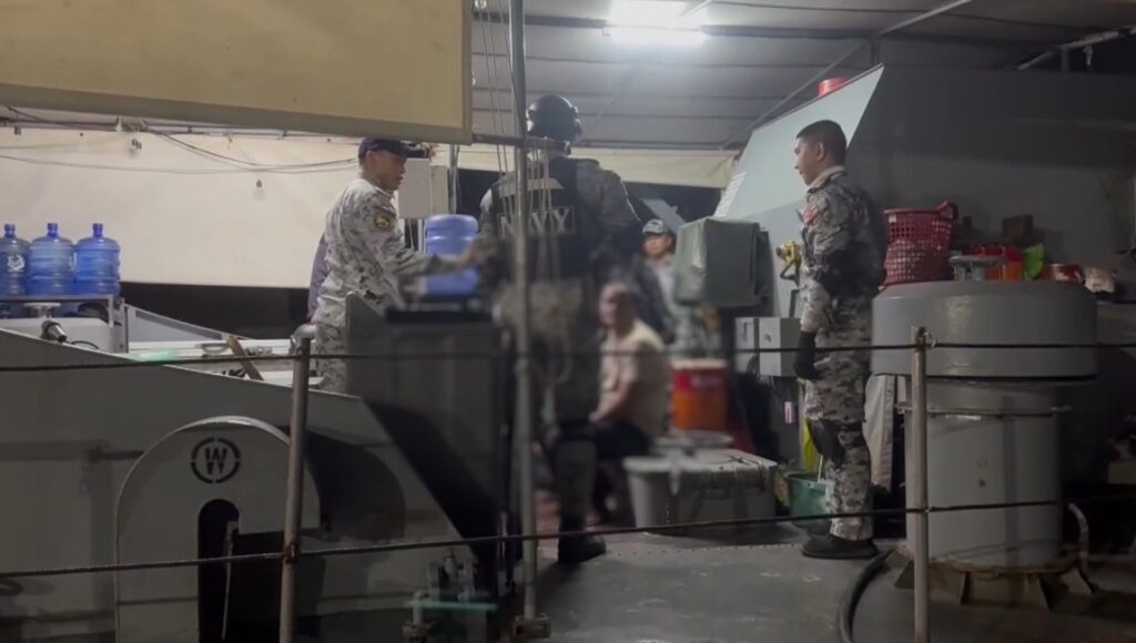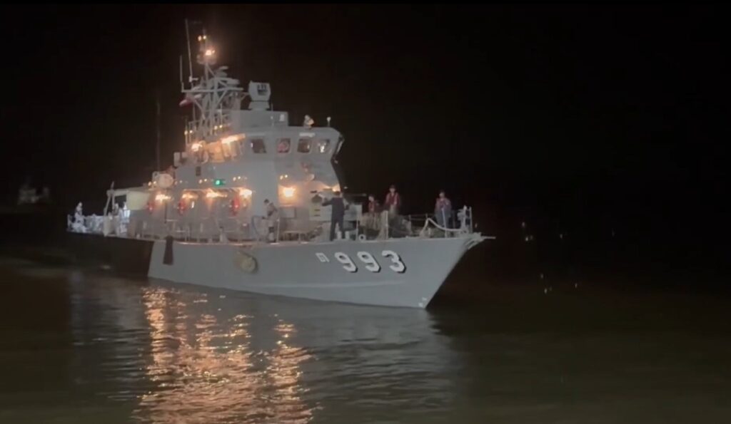 กระทั่งเวลา 21.00 น. เรือ ต.993 พบเรือประมงไม่ทราบสัญชาติดังกล่าวบริเวณด้านใต้เกาะสินไห จึงเข้าจับกุมและควบคุมเรือประมงลำดังกล่าวทันที มีลูกเรือชาวเมียนมา 6 คน แต่ไม่พบเครื่องมือทำการประมงแต่อย่างใด ใต้ท้องเรือสะอาดว่างเปล่า ไม่มีถังใส่ปลาหรือน้ำแข็งเหมือนกับเรือประมงทั่วไป ลักษณะเดียวกับเรือประมงที่ทางทัพเรือภาค 3 เคยจับได้ที่ทะเลระนอง เมื่อเดือนที่ผ่านมา ลักษณะคล้ายกระทำสิ่งผิดกฎหมายอย่างใดอย่างหนึ่งมาก่อนหน้าที่ทหารเรือจะเข้าจับกุม