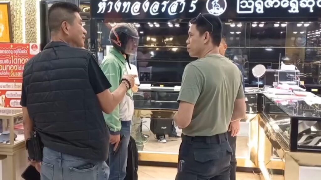 ความคืบหน้าคดีโจรบุกเดี่ยวชิงทองคำรูปพรรณ ภายในร้านทองห้างสรรพสินค้ากลางเมืองแม่สอด จ.ตาก โดยคนร้ายสวมชุดไรเดอร์ สวมหมวกกันน็อกปิดบังใบหน้า ลงมืออย่างใจเย็นด้วยการชักปืนพกสั้นออกมาข่มขู่พนักงานและประชาชนที่อยู่ในร้าน ก่อนกระโดดข้ามตู้ทองเข้าไปหยิบทองคำ 3 ถาด น้ำหนักรวมประมาณ 102 บาท มูลค่ากว่า 4.7 ล้านบาท ใส่กระเป๋าสะพายที่เตรียมมา ก่อนวิ่งไปขี่รถจักรยานยนต์ที่จอดอยู่ในลานจอดรถหน้าห้างฯ หลบหนีไป โดยคนร้ายใช้เวลาปฏิบัติการชิงทองไม่ถึง 1 นาที