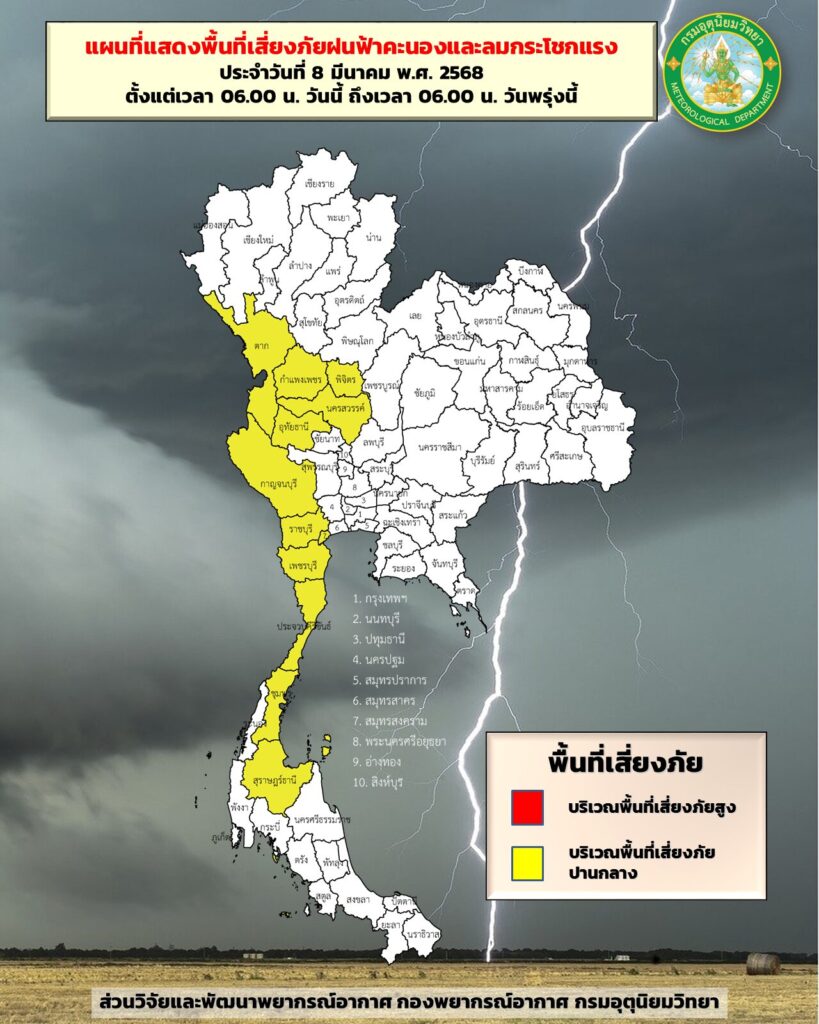 กทม. 8 มี.ค.- กรมอุตุฯ เตือนรับมือ “พายุฤดูร้อน” ภาคเหนือ ภาคกลาง และภาคใต้ตอนบน ยังคงมีฝนฟ้าคะนอง ลมกระโชกแรงบางแห่ง