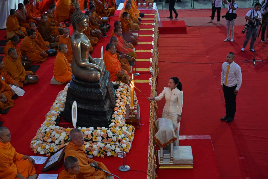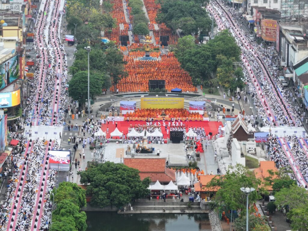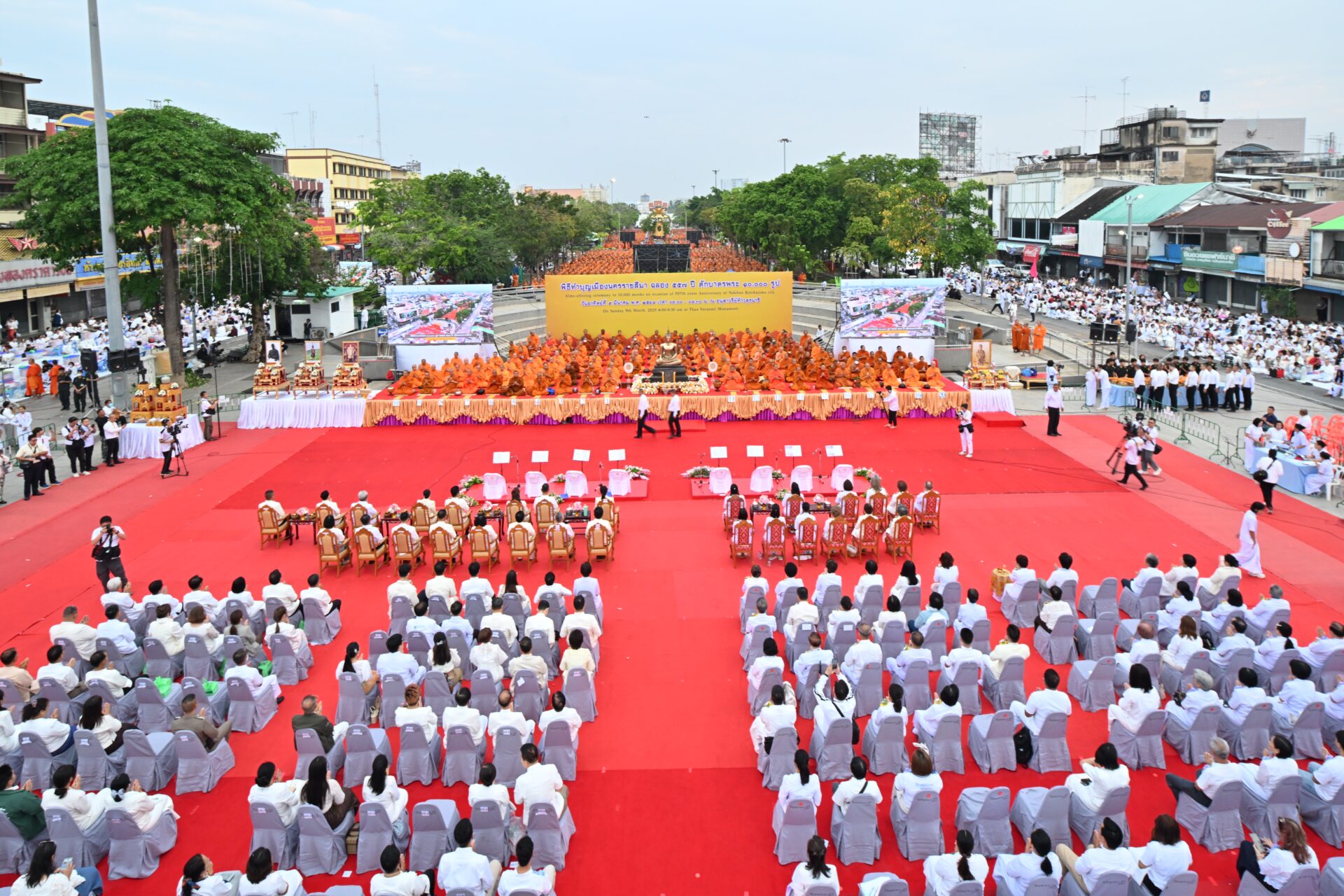 ภายในงาน พุทธศาสนิกชนหลายหมื่นคนได้ร่วมกันกล่าวคำแสดงตนเป็นพุทธมามกะ อาราธนาศีล 5 บำเพ็ญทักษิณานุปทาน คณะสงฆ์เจริญพระพุทธมนต์สมโภชเมืองนครราชสีมา จากนั้นเป็นพิธีตักบาตรพระสงฆ์ 10,000 รูป และอปโลกน์สังฆทาน เพื่อนำข้าวสารอาหารแห้งที่ได้จากการบิณฑบาตในครั้งนี้ไปบรรเทาความเดือดร้อนของคณะสงฆ์ 323 วัด ใน 4 จังหวัดภาคใต้ พร้อมทั้งช่วยเหลือครูและทหารที่ปฏิบัติหน้าที่อยู่ในพื้นที่เสี่ยงภัยภาคใต้ และมอบช่วยเหลือประชาชนในพื้นที่ จ.นครราชสีมา ที่ประสบความเดือดร้อนจากภัยต่างๆ เป็นสาธารณสงเคราะห์อีกด้วย