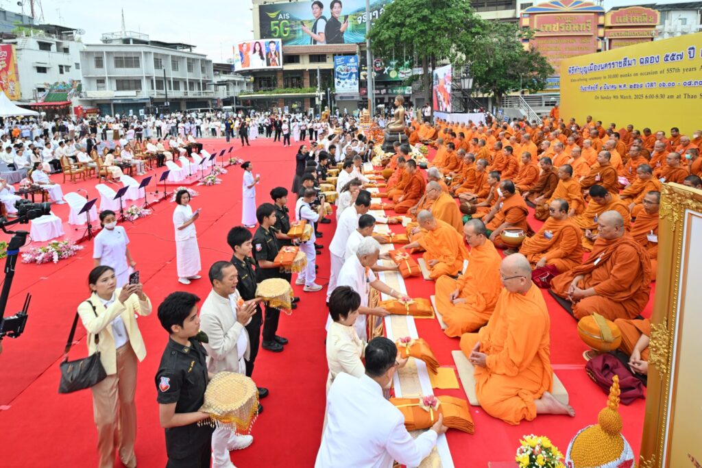 นครราชสีมา 9 มี.ค.-โคราชจัดพิธีตักบาตรพระสงฆ์ 10,000 รูป สมโภชเมืองนครราชสีมา 557 ปี รมว.วัฒนธรรม เป็นประธาน มีพุทธศาสนิกชนหลายหมื่นคนร่วมตักบาตรข้าวสารอาหารแห้ง เพื่อนำไปบรรเทาความเดือดร้อนของคณะสงฆ์ 323 วัดใน 4 จังหวัดภาคใต้