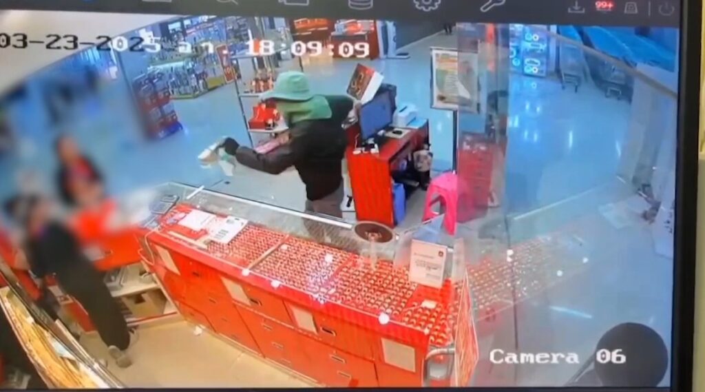 อยุธยา 24 มี.ค. – คนร้ายสวมหมวกปิดบังใบหน้า ใช้อาวุธปืนบุกเดี่ยวชิงทอง ร้านทองภายในห้างสรรพสินค้าแห่งหนึ่ง จ.พระนครศรีอยุธยา ใช้เวลาไม่ถึง1 นาที ได้ทองหนัก 160 บาท ก่อนหลบหนีลอยนวล ตำรวจเร่งตรวจภาพกล้องวงจรปิด ติดตามคนร้ายมาดำเนินคดี