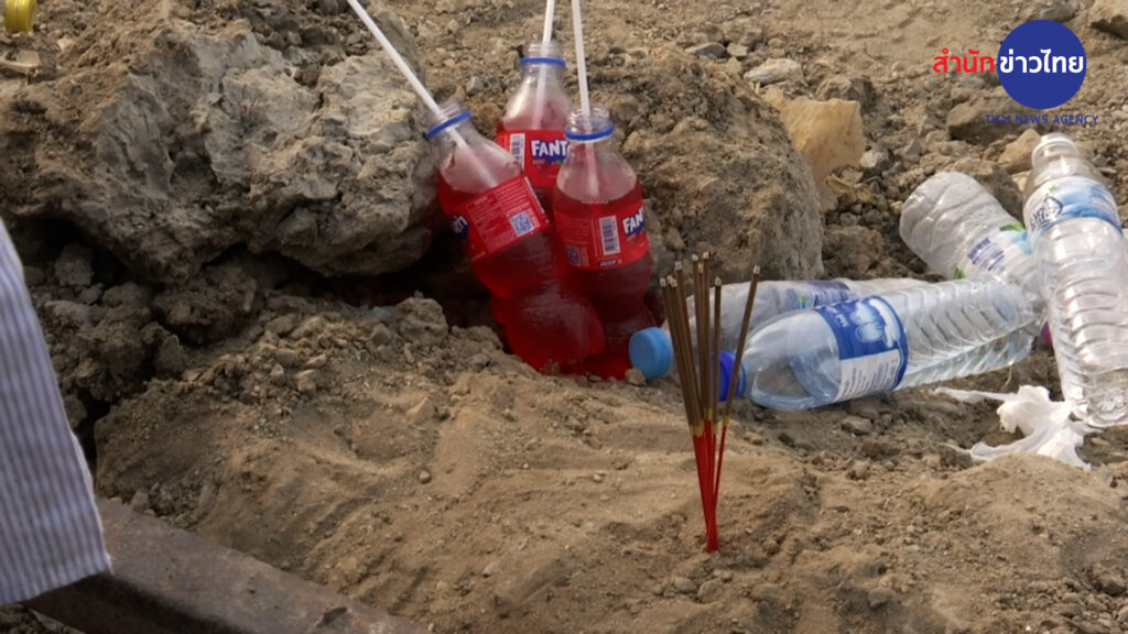 น.ส.วาสนา แม่ของหนึ่งในแรงงานที่ติดอยู่ใต้ซากอาคารแห่งนี้ ได้นำน้ำแดงมาถวาย พร้อมจุดธูปบอกกล่าวเจ้าที่เจ้าทางบริเวณใกล้จุดเกิดเหตุ ขอให้เปิดทางตามความเชื่อ เพื่อเรียกขวัญ ขอให้ลูกชายซึ่งทำงานเดินสายไฟอยู่ที่ชั้น 27 ได้ออกมา ไม่ว่าจะยังมีชีวิตอยู่หรือไม่ก็ขอให้ได้พบโดยเร็ว