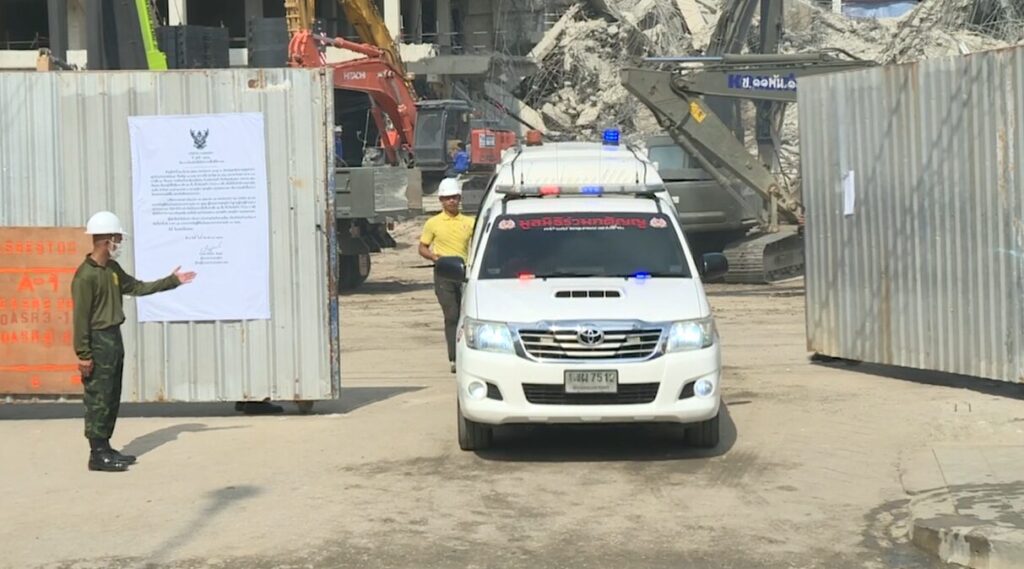 กทม. 6 เม.ย.-วันที่ 9 ของภารกิจค้นหาผู้ติดค้างใต้ซากตึก สตง. เจ้าหน้าที่กู้ภัยและเจ้าหน้าที่ส่วนอื่นๆ นำกำลังเข้าพื้นที่ค้นหา ล่าสุดสามารถนำร่างผู้เสียชีวิตออกมาได้เพิ่ม