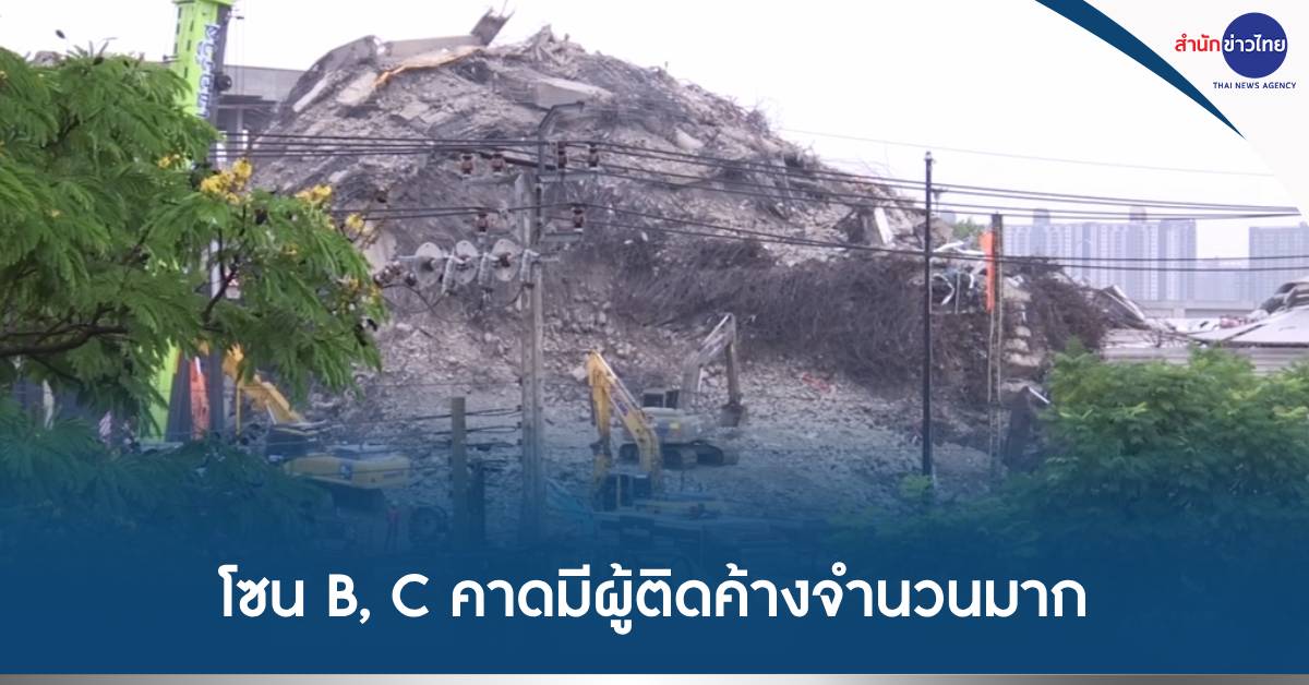นายอัญวุฒิ โพธิ์อำไพ หัวหน้ารถกู้ภัย มูลนิธิร่วมกตัญญู เปิดเผยว่า พบจุดต้องสงสัยที่มีลักษณะคล้ายร่างกายมนุษย์ติดอยู่ในซากอาคารหลายจุด ในพื้นที่โซน B และโซน C แต่ไม่สามารถนำออกมาได้ เพราะติดอุปสรรคเรื่องโครงสร้างทับถมกันอยู่ เมื่อทีมค้นหาไม่สามารถนำร่างผู้ที่ติดค้างออกมาได้ เจ้าหน้าที่จึงใช้เครื่องจักรขนาดใหญ่ทำการรื้อซากของอาคารอีกครั้ง และช่วงเช้าที่ผ่านมา เจ้าหน้าที่ได้นำชิ้นส่วนมนุษย์ 5 ชิ้น ที่พบในโซน B และโซน C ส่งนิติเวช รพ.ตำรวจ แล้ว