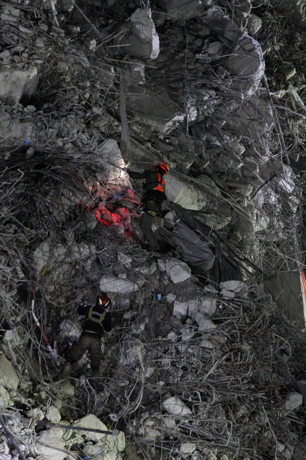 และเมื่อฝนหยุดตก เจ้าหน้าที่ได้เดินหน้าใช้เครื่องจักรใหญ่ นำแผ่นคอนกรีตและเศษเหล็กออกจากกองซากอาคารถล่ม พร้อมทั้งเร่งระบายน้ำออกจากเขตพื้นที่อาคารถล่ม