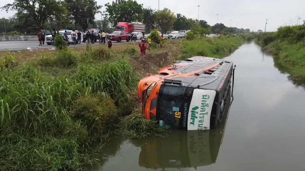 พระนครศรีอยุธยา 7 เม.ย. – รถบัสรับส่งพนักงานพุ่งตกคูน้ำ ถนนสายเอเชีย ขาขึ้น จ.พระนครศรีอยุธยา มีผู้บาดเจ็บ 21 คน คาดคนขับหลับใน เบื้องต้นยังไม่พบตัว
