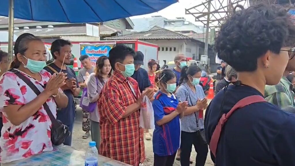 ในช่วงเช้าญาติของคนงานที่ติดใต้ซากอาคาร ได้นำธูป 1 ดอก มาจุดบอกกล่าวเจ้าหน้าที่เจ้าทางและสิ่งศักดิ์สิทธิ์ เพื่อขอให้เปิดทางให้พบร่างของคนงานที่ติดอยู่ใต้ซากอาคาร ด้วยความโศกเศร้า เนื่องจากเป็นเวลาย่างเข้าสู่วันที่ 12 วันแล้วที่ญาติของแรงงานกลุ่มนี้เฝ้าติดตามความเคลื่อนไหวของเจ้าหน้าที่ในการค้นหาร่างของผู้ที่ติดใต้ซากอาคาร .-สำนักข่าวไทย