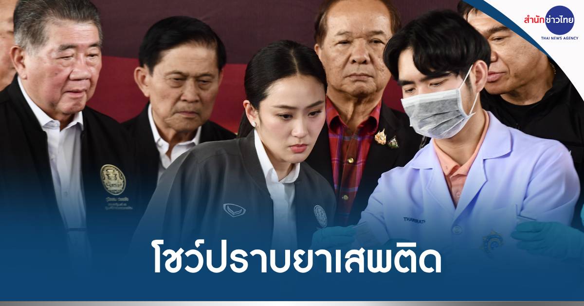 น.ส.แพทองธาร กล่าวว่า การแก้ปัญหายาเสพติดมีความคืบหน้าเพราะความร่วมมืออย่าง บูรณาการ เรื่องนี้ไม่สามารถทำโดยภาคส่วนใดหรือหน่วยงานหน่วยหนึ่งได้ ก่อนที่ตนจะเข้ามาเป็นนายกฯ ได้ลงพื้นที่หาเสียงพบว่าเรื่องที่พี่น้องบ่นและเป็นเรื่องที่หนักหนาสาหัสในทุกพื้นที่ คือ เรื่องของยาเสพติดและพูดตลอดขอให้รัฐบาลช่วยปราบยาเสพติดเพราะเมื่อมี 1 คนในบ้านติดยยา จะแพร่ในชุมชนอย่างรวดเร็วและส่งผลเสียต่อสถาบันครอบครัว ชุมชนไปจนถึงจังหวัด และระดับประเทศ ดังนั้นทุกคน ทุกภาคส่วนมีส่วนสำคัญอย่างมากในการที่จะช่วยให้ยาเสพติดน้อยลงจนหมดลงไปได้