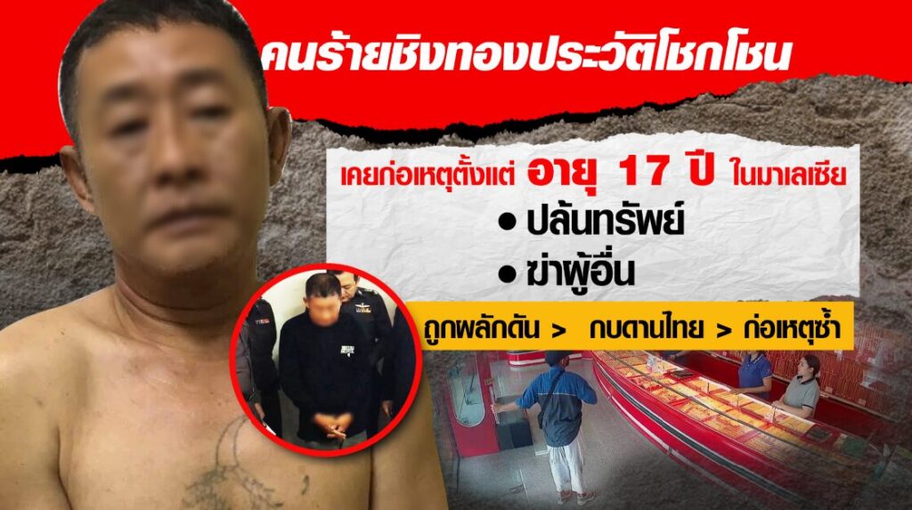 โดยเมื่อปี 2558 ได้ฆ่าผู้อื่น 2 คน ที่ อ.หาดใหญ่ และปี 2560 ก่อเหตุชิงทองกว่า 100 บาท บริเวณร้านทองตรงข้ามร้านที่เกิดเหตุปัจจุปัน โดยมีการนำทองบางส่วนไปขายเพื่อซื้ออาวุธปืน ซึ่งคดีเก่าถูกจับกุมและถูกศาลจำคุกกว่า 20 ปี แต่รายละเอียดว่าไดัรับการประกันตัวหรือได้รับการปล่อยตัวเมื่อไหร่ได้สั่งการให้ตำรวจภูธรภาค 9 ตรวจสอบ และในปี 2568 มาก่อเหตุชิงทองร้านดังกล่าวอีก