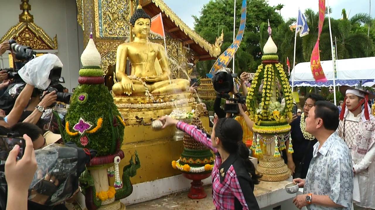 โดยนายกรัฐมนตรี สวมชุดลายผ้าขาวม้าสีชมพู ร่วมพิธีสรงน้ำพระพุทธสิหิงค์ พระคู่บ้านคู่เมืองเชียงใหม่ ที่วัดพระสิงห์วรมหาวิหาร ต.พระสิงห์ อ.เมืองเชียงใหม่ จ.เชียงใหม่ นายกรัฐมนตรี ได้สนทนาธรรมกับพระเทพสิงหวราจารย์ (โสภณ โสภโณ) เจ้าอาวาสวัดพระสิงห์วรมหาวิหาร ที่ได้สอบถามถึงภารกิจที่ทราบว่างานเยอะใช่หรือไม่ ซึ่งนายกรัฐมนตรี กล่าวตอบกลับว่า มีงานเยอะ อย่างวันนี้มีเปิดงานหลายงาน
