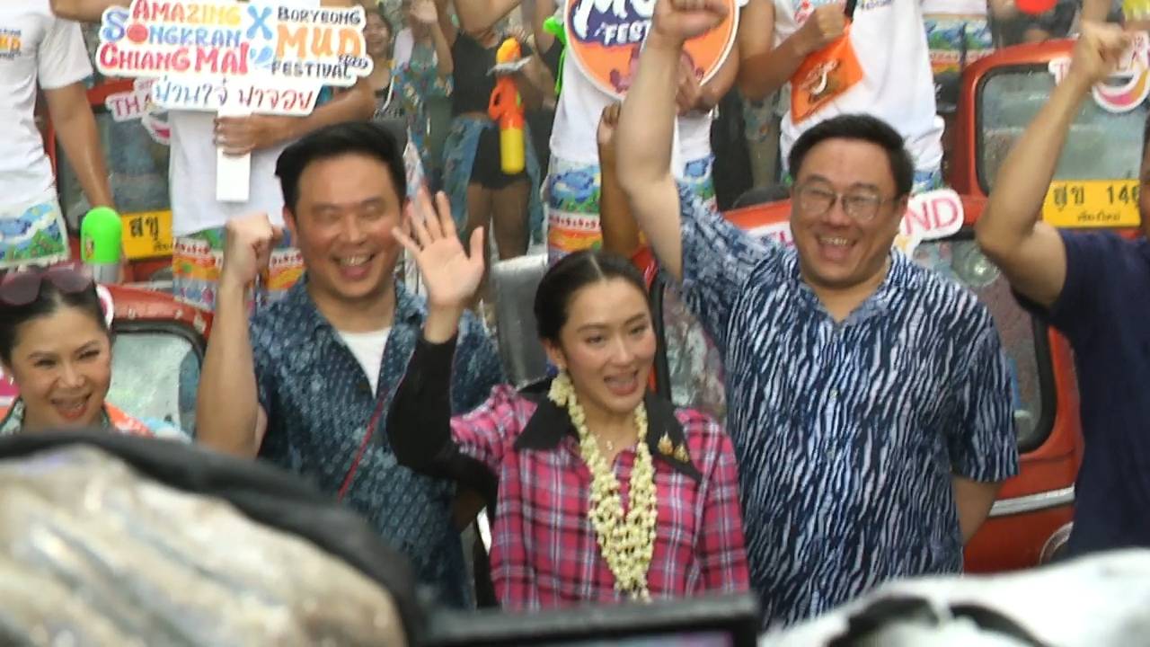 น.ส.แพทองธาร ชินวัตร นายกรัฐมนตรี พร้อมด้วยนายทักษิณ ชินวัตร อดีตนายกรัฐมนตรี และนายปิฎก สุขสวัสดิ์ สามี ร่วมกิจกรรมวันสงกรานต์ที่ จ.เชียงใหม่ ซึ่งถือเป็นครั้งแรกที่ น.ส.แพทองธาร มาร่วมงานสงกรานต์ที่ จ.เชียงใหม่ ในฐานะนายกรัฐมนตรี