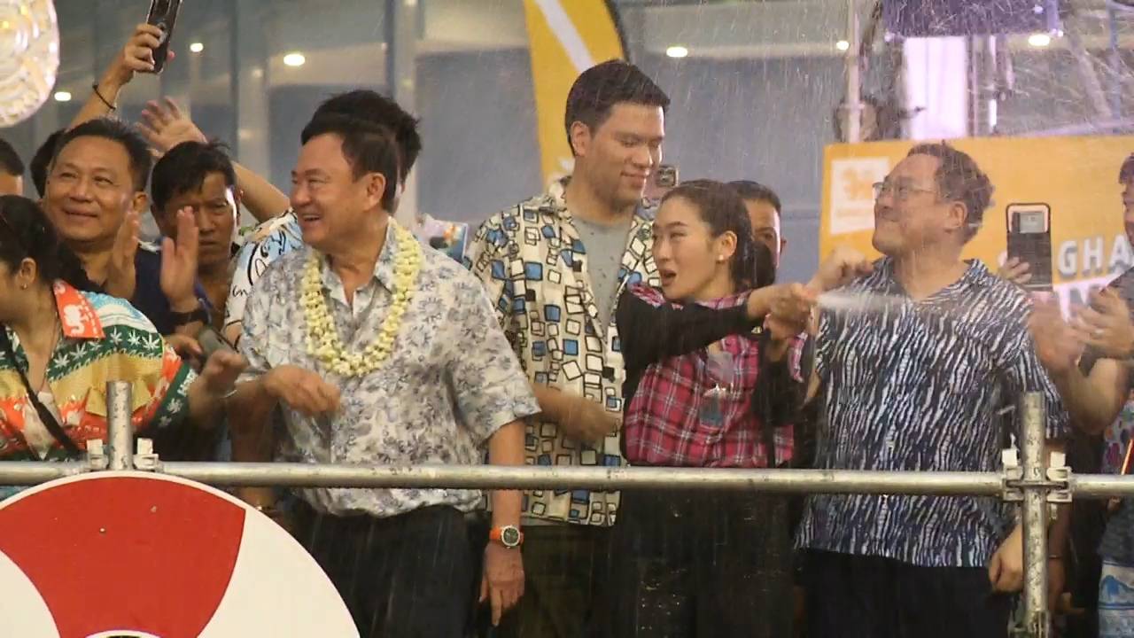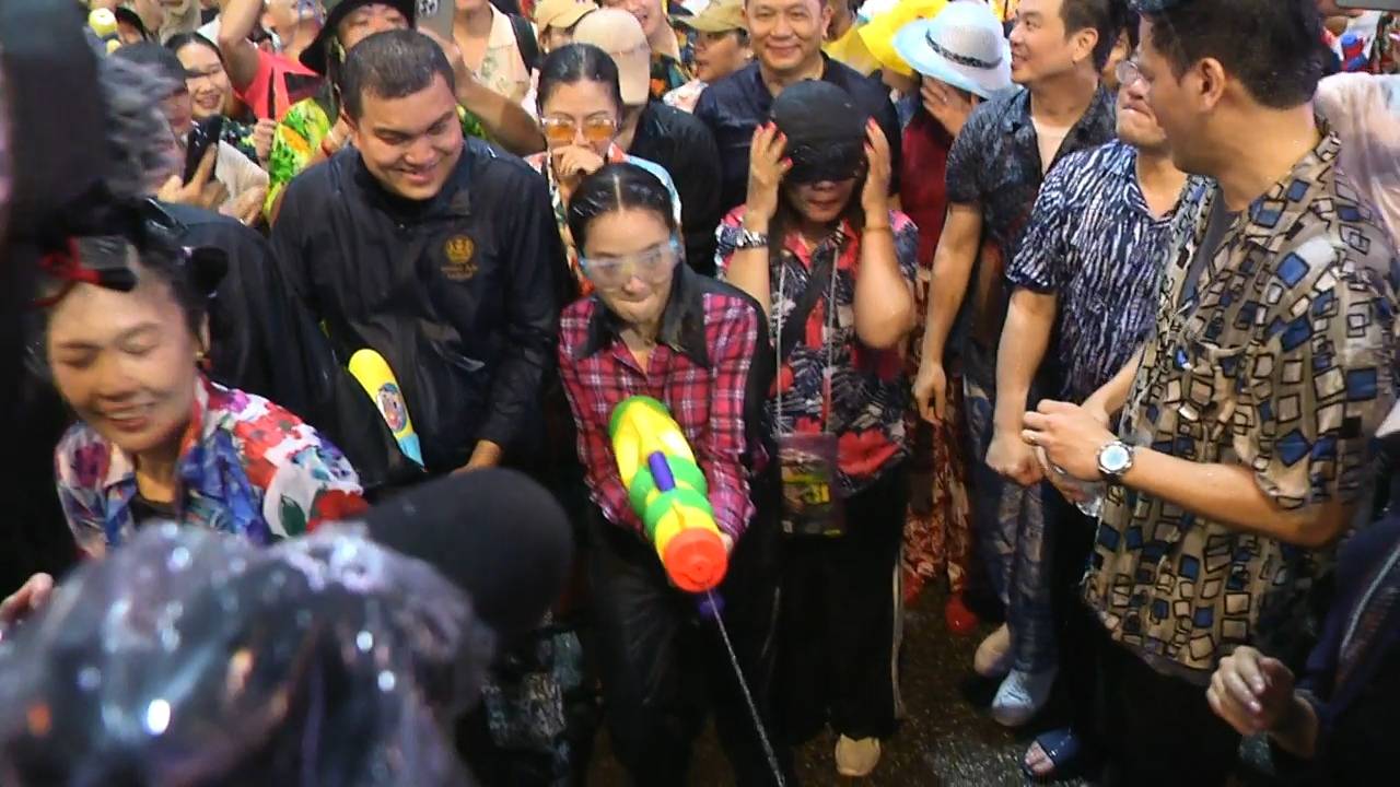 จากนั้น นายกรัฐมนตรี และนายทักษิณ ได้ร่วมฉีดน้ำกับนักท่องเที่ยวที่มาร่วมงาน พร้อมกับทำมือมินิฮาร์ท ซึ่งบรรยากาศเป็นไปอย่างสนุกสนาน.-316-สำนักข่าวไทย