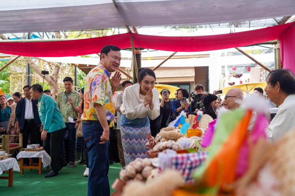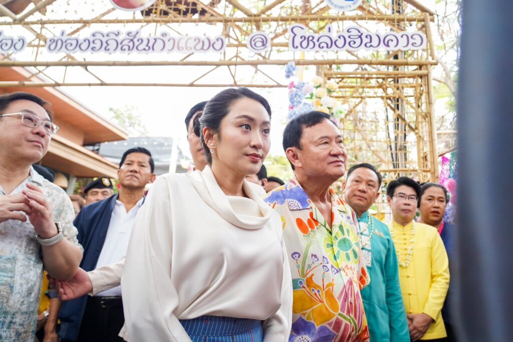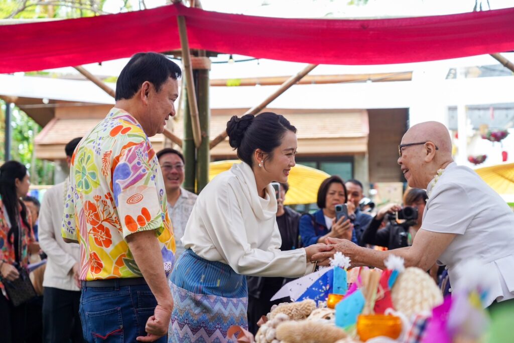 เชียงใหม่ 14 เม.ย.- นายกฯ ควง “ทักษิณ” ร่วมงาน “ป๋าเวณีปี๋ใหม่เมืองสันกำแพง” ร่วมพิธีสระเกล้าดำหัวคุณย่า ปักตุงประจำวันเกิด ที่ชุมชนโหล่งฮิมคาว เผยรู้สึกผูกผันกับสันกำแพงเพราะเป็นบ้านเกิดพ่อ ก่อนช้อปสินค้าชุมชนทุกร้าน