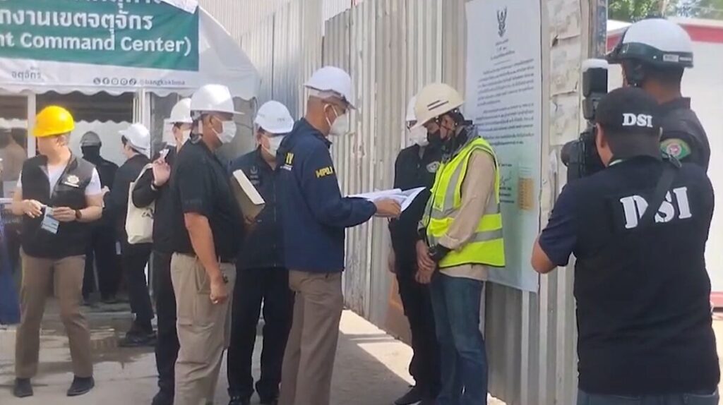 ขณะที่เย็นวานนี้ อธิบดีกรมสอบสวนคดีพิเศษ (ดีเอสไอ) มอบหมายให้ พ.ต.ต.วรณัน ศรีล้ำ ผอ.กองคดีคุ้มครองผู้บริโภค ในฐานะรองหัวหน้าคณะพนักงานสอบสวนคดีพิเศษ เข้าทำการอายัดสถานที่ปฏิบัติงานชั่วคราวของกิจการร่วมค้าไอทีดี-ซีอาร์อีซี และกิจการร่วมค้าพีเคดับเบิ้ลยู (PKW) จำนวน 24 ตู้คอนเทนเนอร์ ซึ่งตั้งอยู่ในอาคารจอดรถ สำนักงานการตรวจเงินแผ่นดินที่เกิดการถล่ม โดยดีเอสไอ มีหนังสืออาศัยอำนาจตามความในมาตรา 22 แห่ง พ.ร.บ.การสอบสวนคดีพิเศษ แจ้งไปยัง ผกก.สน.บางซื่อ และ ผอ.สำนักป้องกันและบรรเทาสาธารณภัย กทม.ขอความร่วมมือรักษาสถานที่ เพื่อการสอบสวนคดีพิเศษ มอบหมายเจ้าหน้าที่ ตรวจตราสภาพสถานที่ เพื่อป้องกันการยักย้ายทำลายพยานเอกสาร นอกจากนี้ยังมีหนังสือเรียกให้ผู้บริหาร ผู้มีอำนาจจัดการแทนกิจการร่วมค้าไอทีดี-ซีอาร์อีซี ชี้แจงข้อเท็จจริงส่งบุคคลมาให้ถ้อยคำ แจ้งการอายัดอาคารสำนักงานชั่วคราวและทรัพย์สินในสำนักงานระหว่างการตรวจสอบพิจารณา ทั้งนี้ ตู้คอนเทนเนอร์ 24 ตู้ ซึ่ง กิจการร่วมค้าทั้ง 2 แห่ง มีการจัดเก็บเอกสารที่เกี่ยวกับการดำเนินการก่อสร้างไว้เป็นจำนวนมาก ซึ่งอาจมีพยานหลักฐานที่มีความสำคัญต่อรูปคดี.-สำนักข่าวไทย