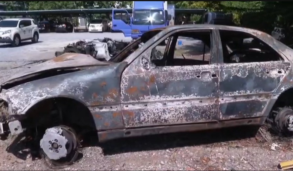 ส่วนรถคันที่ 3 เป็นรถกระบะยี่ห้อโตโยต้า วีโก้แชมป์ สีเทา ฝากระโปรงหน้าได้รับความเสียหาย โดยรถทั้ง 3 คัน ถูกนำมาจอด เก็บไว้ที่ สน.ธรรมศาลา