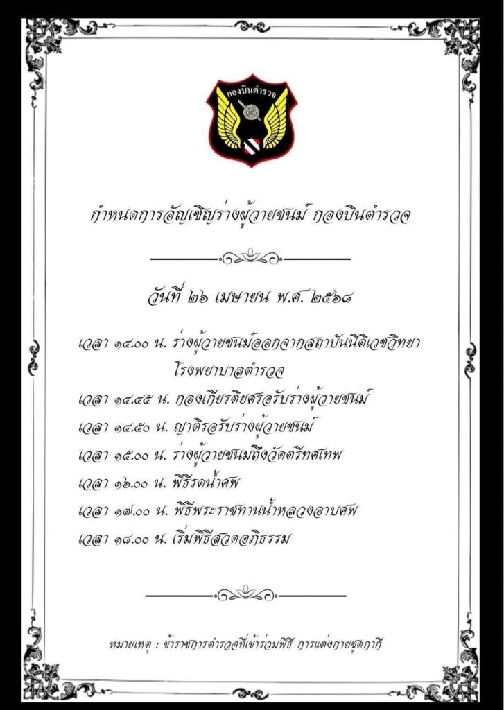 สำหรับกำหนดการบำเพ็ญกุศลของตำรวจทั้ง 6 นาย จะเริ่มขึ้นช่วงบ่ายวันนี้
