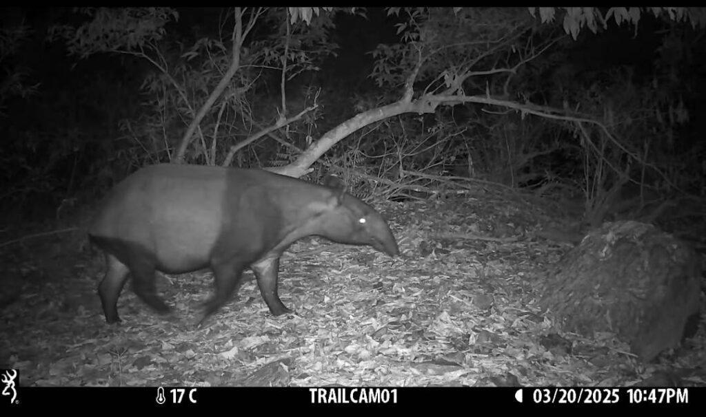 นายมงคล ไชยภักดี หัวหน้าอุทยานแห่งชาติแก่งกระจาน เปิดเผยว่า ระหว่างปฏิบัติภารกิจสำรวจและบำรุงรักษากล้องดักถ่ายภาพสัตว์ป่า ช่วงปลายเดือนเมษายน 2568 บริเวณริมแม่น้ำเพชรบุรี เจ้าหน้าที่ได้ตรวจสอบกล้องที่ติดตั้งไว้ตามจุดสำคัญ พบภาพ “สมเสร็จ” (Tapirus indicus) สัตว์เลี้ยงลูกด้วยนมขนาดใหญ่ที่เหลืออยู่ไม่ถึง 250 ตัวในประเทศไทย กำลังเดินริมน้ำในยามค่ำคืนอย่างสง่างาม